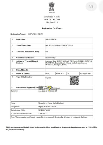 DSL Express Packers Movers